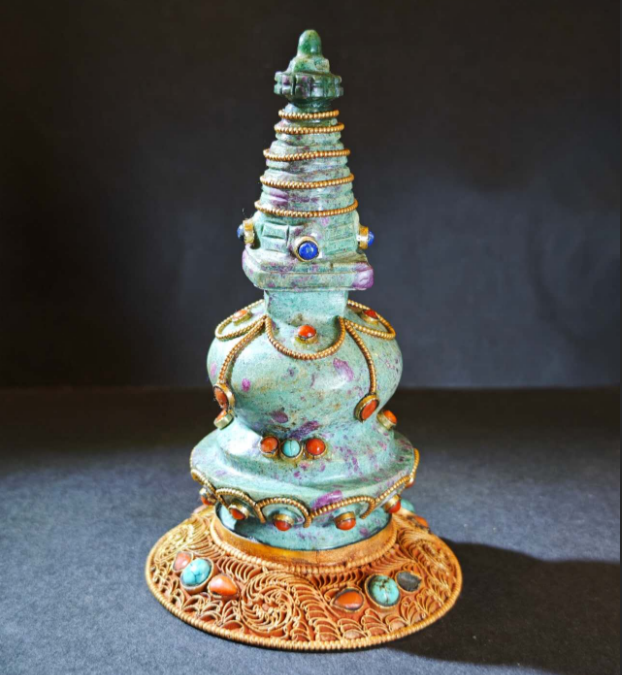 RUBY–EMERALD MATRIX HIMALAYAN STUPA SCULPTURE